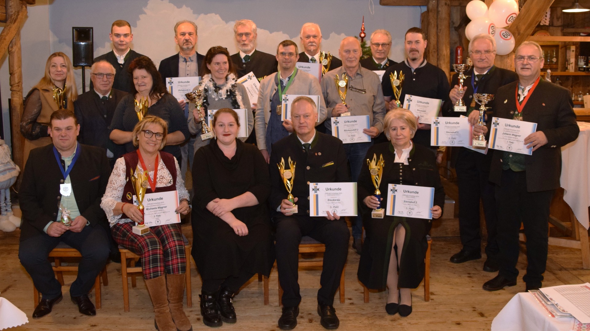 Am 05.12.2025 fand im Gasthaus "zum Fritz" in Leitzersdorf die alljähliche Siegerehrung, heuer auch mit kleiner Weihnachtsfeier inklusive Tombola, statt. Eine Mannschaft, namentlich Sierndorf 3, welche nicht nur den Hauptwerb der Division 1 sitzend aufgelegt dominierte, sondern auch den Stehend-aufgelegt-Bewerb mit großem Abstand gewann, stach heraus. In der Division 2 wurde es spannender, da bis zum Schluss noch vier Mannschaften die Chance auf den Sieg hatten. Am Ende konnte sich die Mannschaft aus Korneuburg durchsetzen und darf als Aufsteiger des Jahres in der kommenden Saison in der Sitzend-aufgelegt Division 1 ihr Können unter Beweis stellen. In den Einzelwertungen konnte sich auch heuer wieder der Kamerad Karl Lendl einen Rekordsieg mit 199,5 Ringen (dreimalig sogar mit der Bestzahl von 200 Ringen) in seiner Kategorie Sitzend-aufgelegt Division 1 erkämpfen. In der Division 2 gewann Mattäa Botic Fidler vor Peter Schick mit einem Abstand von 2.14 Ringen im Schnitt. Der nächste Rekord fiel im Bewerb Stehend-aufgelegt. Johann Mareiner konnte hier als einziger Schütze die Bestleistung von 200 aus 200 möglichen Ringen bei einer Begegnung erreichen. Schlussendlich musste er sich nur hinter Johann Wagner aus Sierndorf einreihen, welcher den Bewerb mit einem Ringdurchschnitt von 196,43 gewann.